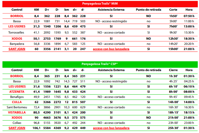 - XIV Penyagolosa Trails® CSP® [Castelló-Penyagolosa]: 106K 5600d+ 4400d- 18/04/2025. Tiempo máximo: 25 h. 30’. 5 puntos ITRA. UTMB 100K Qualifier. 2027 Western States Endurance Run Qualifer.