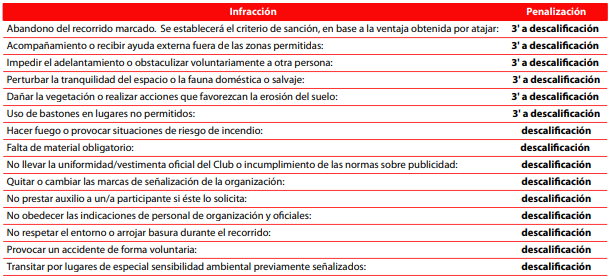 La Jueza o el Juez Arbitro de la RFEA aplicará las penalizaciones o descalificaciones siguientes, por conocimiento propio de la acción o por informe de otras juezas o jueces, de la organización u otros medios.