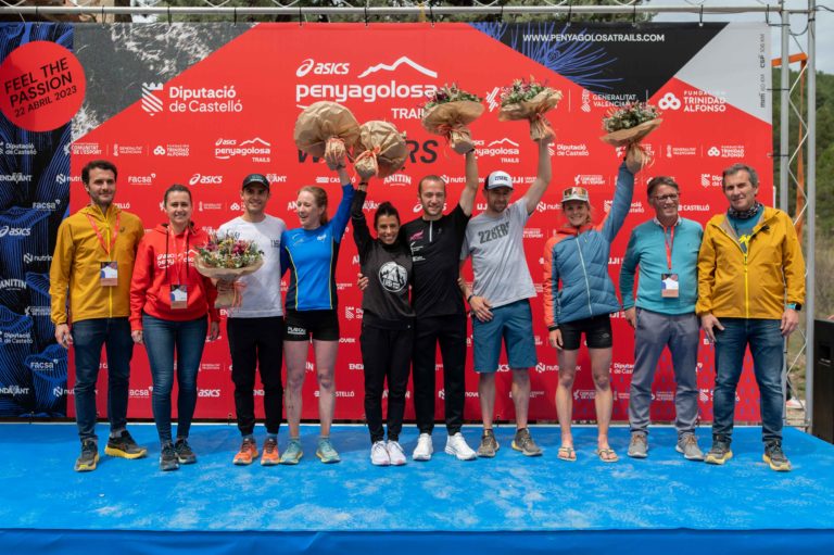 Nada más entrar a meta la tercera mujer en CSP, se ha procedido a realizar la ceremonia de las flores. En ella, ha participado el Director General de Medio Natural y de Evaluación Ambiental, Julio Ramón Gómez, el Director general del Deporte de la Conselleria de Educación, Joan Miquel Moya, la Diputada de deportes de la Diputació de Castelló, Tania Baños, y el Marketing Manager Iberia en ASICS Corporativo, Santiago Martínez, y el Director de ASICS Penyagolosa Trails, Tico Cervera. Así, primero se ha hecho el reconocimiento a los dos pódiums de la CSP y después de la MiM, que han sido los siguientes: