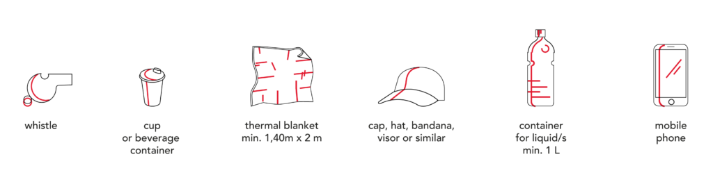 - Each runner must carry all mandatory equipment throughout the race (see article 9 EQUIPMENT). At any time, commissioners may request a check of this equipment. All runners are obliged to submit to such requests, under penalty of elimination from the race.