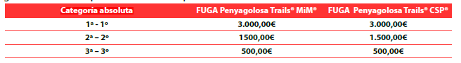 - FUGA Penyagolosa Trails® MiM®: 105 €.